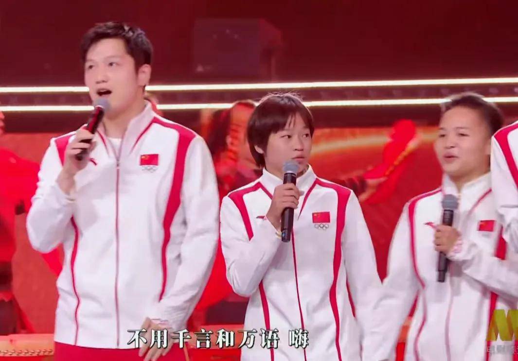 后面奥运健儿的加入给节目增加了看点。全红婵的麦克风声音似乎还要大一些,在大合唱中非常突出。她也很大胆敢唱,虽然有些不在调上,但也证明了确实是真唱。