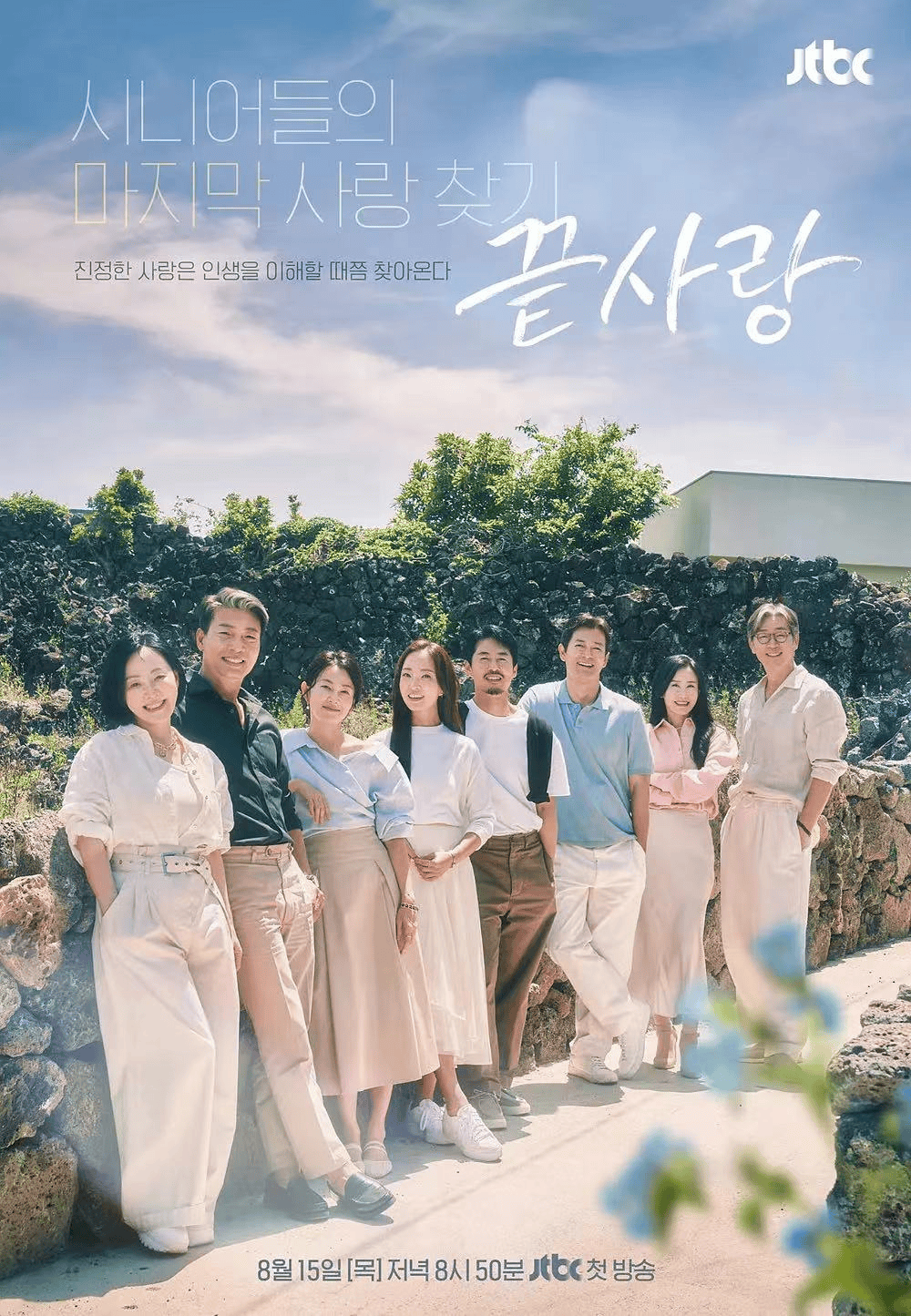 这是上个月开播的韩国综艺《最后的爱情》的开篇,10位50 银发素人嘉宾相聚济州岛海边,寻找“人生末尾的心动”,而他们合宿的小屋,也被命名为“末爱厝”。