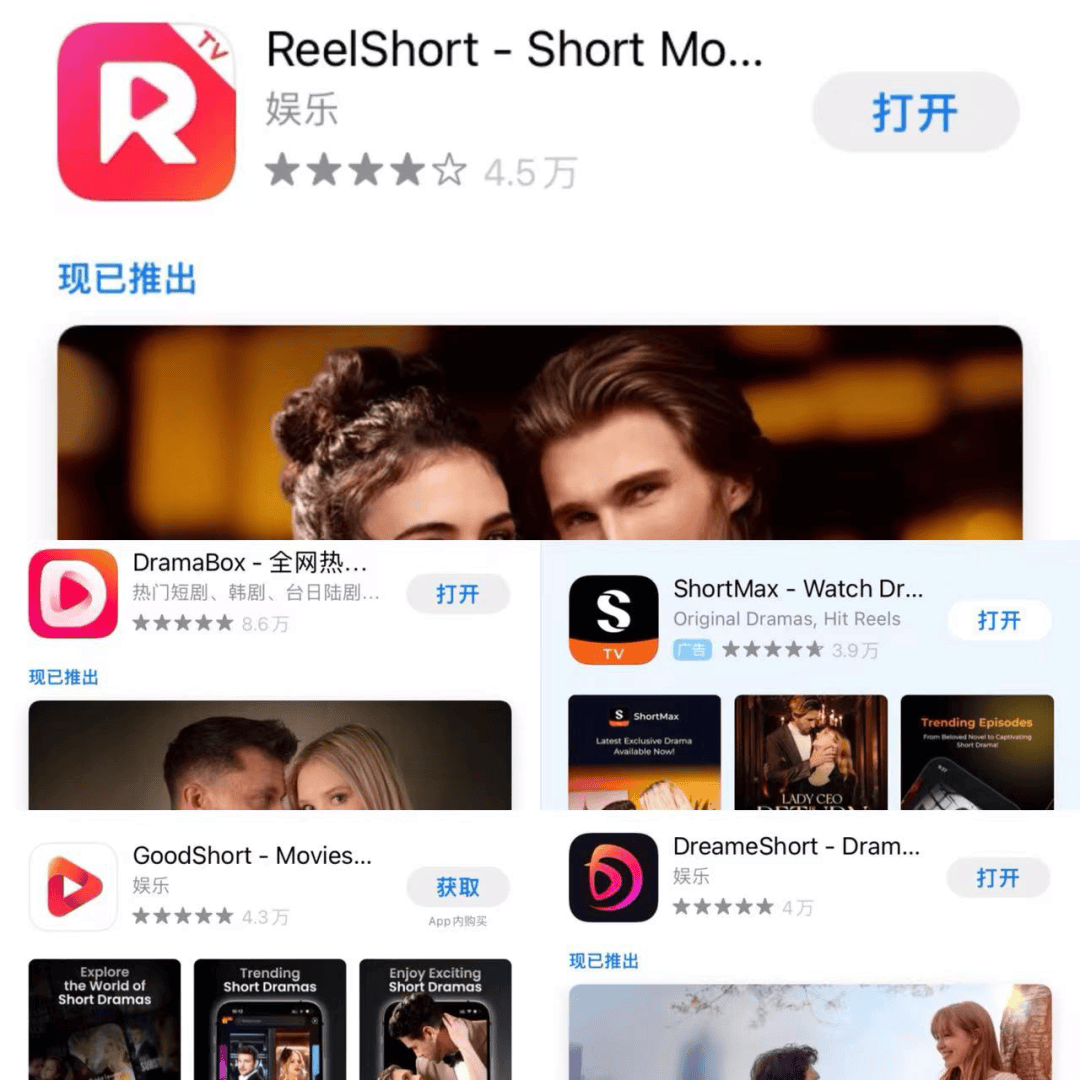 最近两年,短剧犹如搭上了筋斗云,一个跟头就是十万八千里,迅速在北美市场发展起来。根据《2024年短剧出海市场洞察》报告显示,2023年中国头部短剧出海平台合计下载量达2823万,净流水5671万美元,较往年有爆发式的增长。同时,截至2024年2月底,已有多达40多款短剧App试水海外市场,累计下载量近5500万次,内购收入达到1.7亿美元。如ReelShort、ShortMax、DramaBox等。