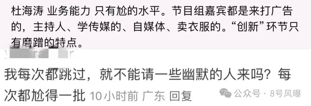 不少观众认为明星观察室的嘉宾说话没意思,令人尴尬,尤其是杜海涛,每一次看到观察室他们只能选择跳过。