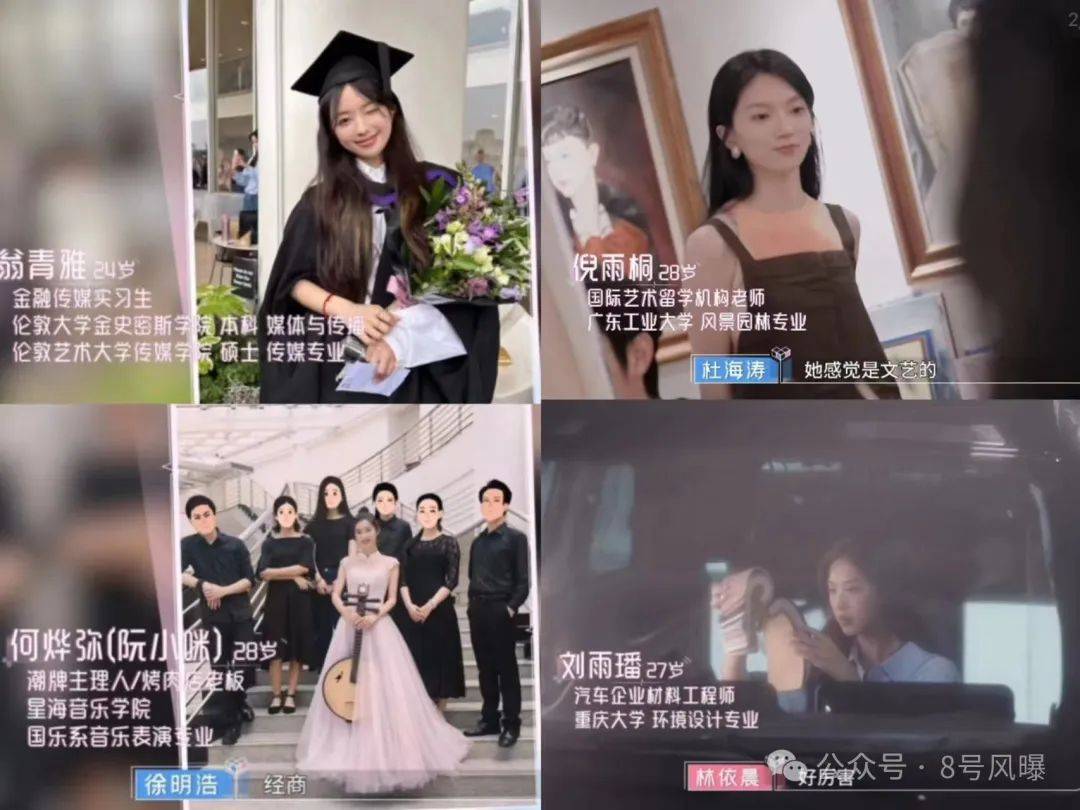 从女嘉宾来说,这些女生不是有过多年的海外留学经历,就是学习艺术多年的高知家庭,是普通人望尘莫及也无法达到的高度。