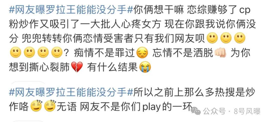然而,罗拉的这篇澄清长文非但没有平息网友们的质疑,反而像是火上浇油,引爆了更大的舆论风暴,网友们纷纷涌入评论区表达不满和质疑,有网友认为他们是在利用恋情炒作,以此来获取流量和利益。