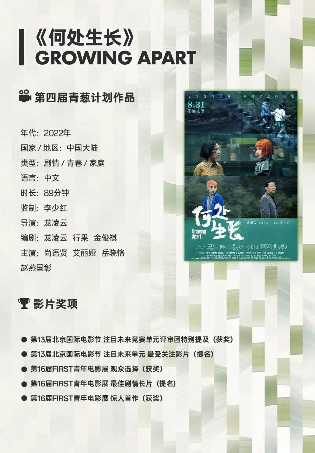 导演/编剧:龙凌云(第四届青葱计划导演)
