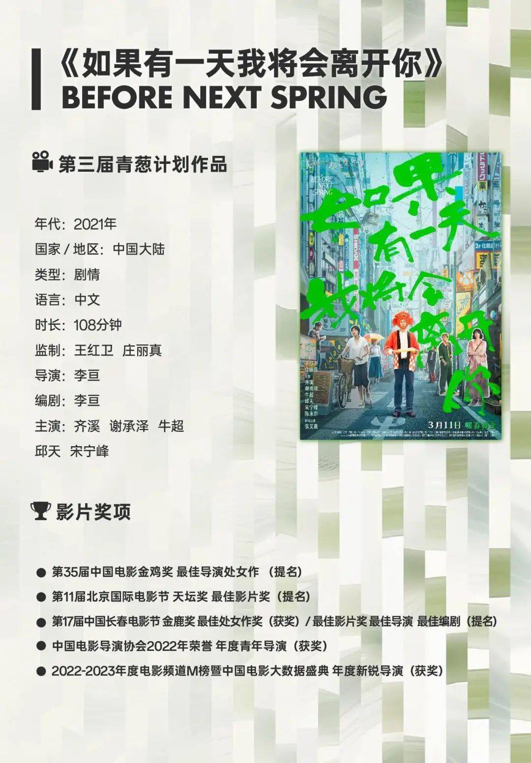 导演/编剧:李亘(第三届青葱计划导演)