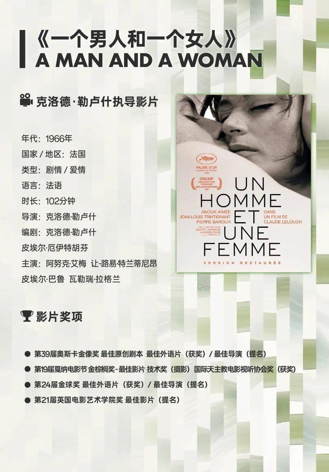 《一个男人和一个女人》特别放映(102分钟)