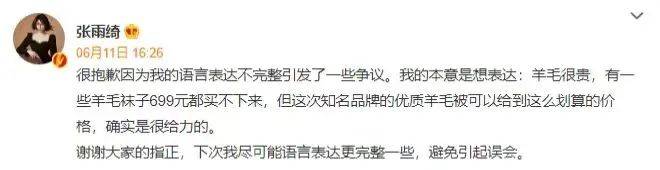 此外,张雨绮在带货时,说699元买不起一双袜子,也是被很多人吐槽,给人感觉高高在上,没法让普通人共情。