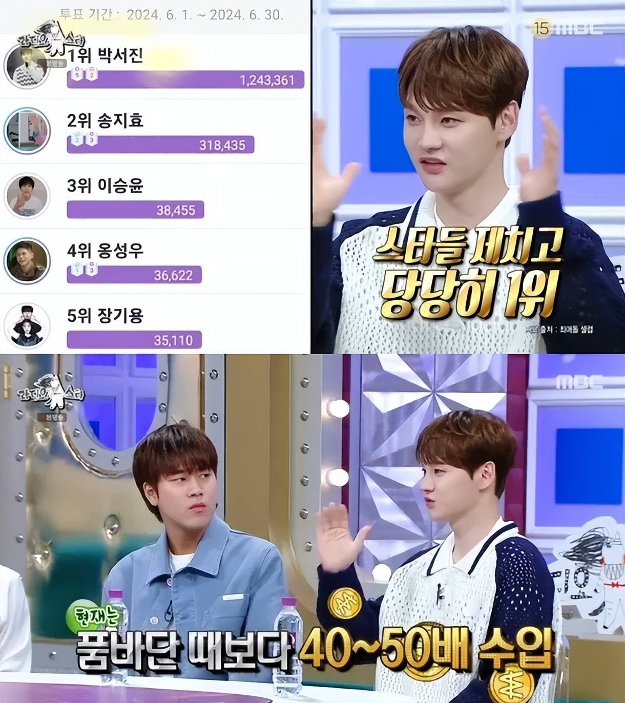 节目中,歌手朴瑞镇表示自己是一个努力的帅哥,并开玩笑说:“我在外貌方面进步了很多”,令嘉宾们惊讶,他表示,他的父母性格很好,所以似乎不需要做任何事情,如果你看他之前和之后的照片,有明显的区别,而且他花的费用超过1亿韩元。