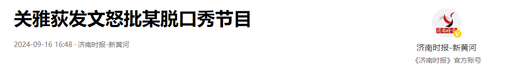 参考资料:2024-09-16 16:48·济南时报-新黄河——关雅荻发文怒批某脱口秀节目