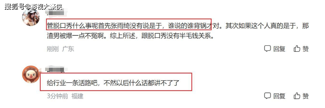 相反的评论则是:脱口秀的本质是幽默与讽刺,关键看观众如何解读。若张雨绮未直接点名,便不应随意归咎,再者若指控属实,渣男被曝也属情理之中,与脱口秀形式无直接关联。