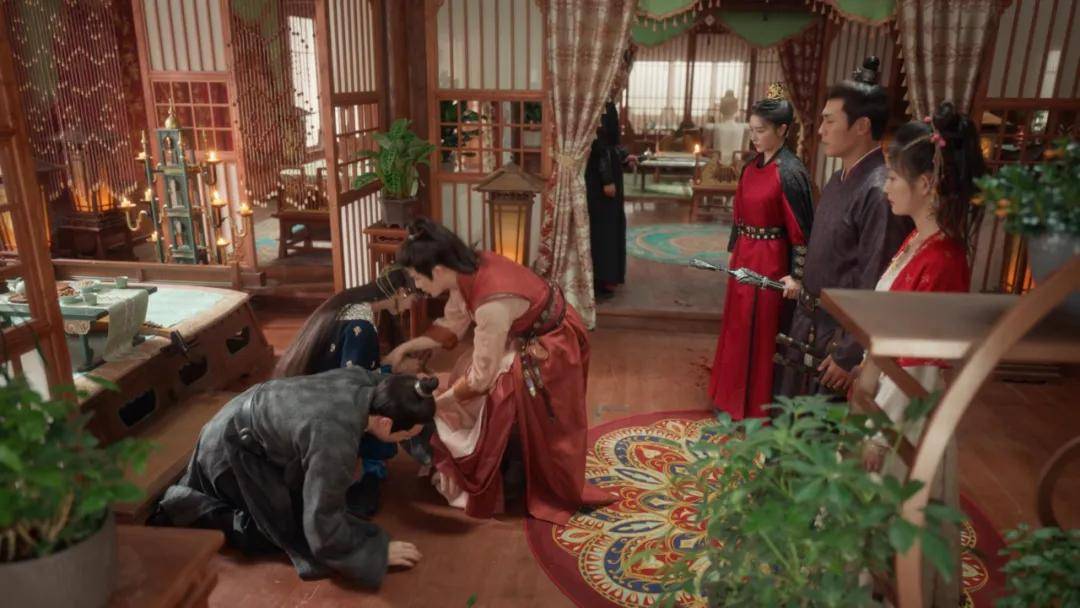 最后一集,谋反的青儿准备安排人刺杀阿术时,忽然一个反转,元莫等人出现,将青儿杀死,助力阿术公主顺利登基。众人站在一起,一个个暗暗助力的使臣出场,又是通过闪回加画外音的手法,为观众解说机智有谋的主角团是如何下一盘大棋的。这样的直给,完全将观众的智商放在地上摩擦。