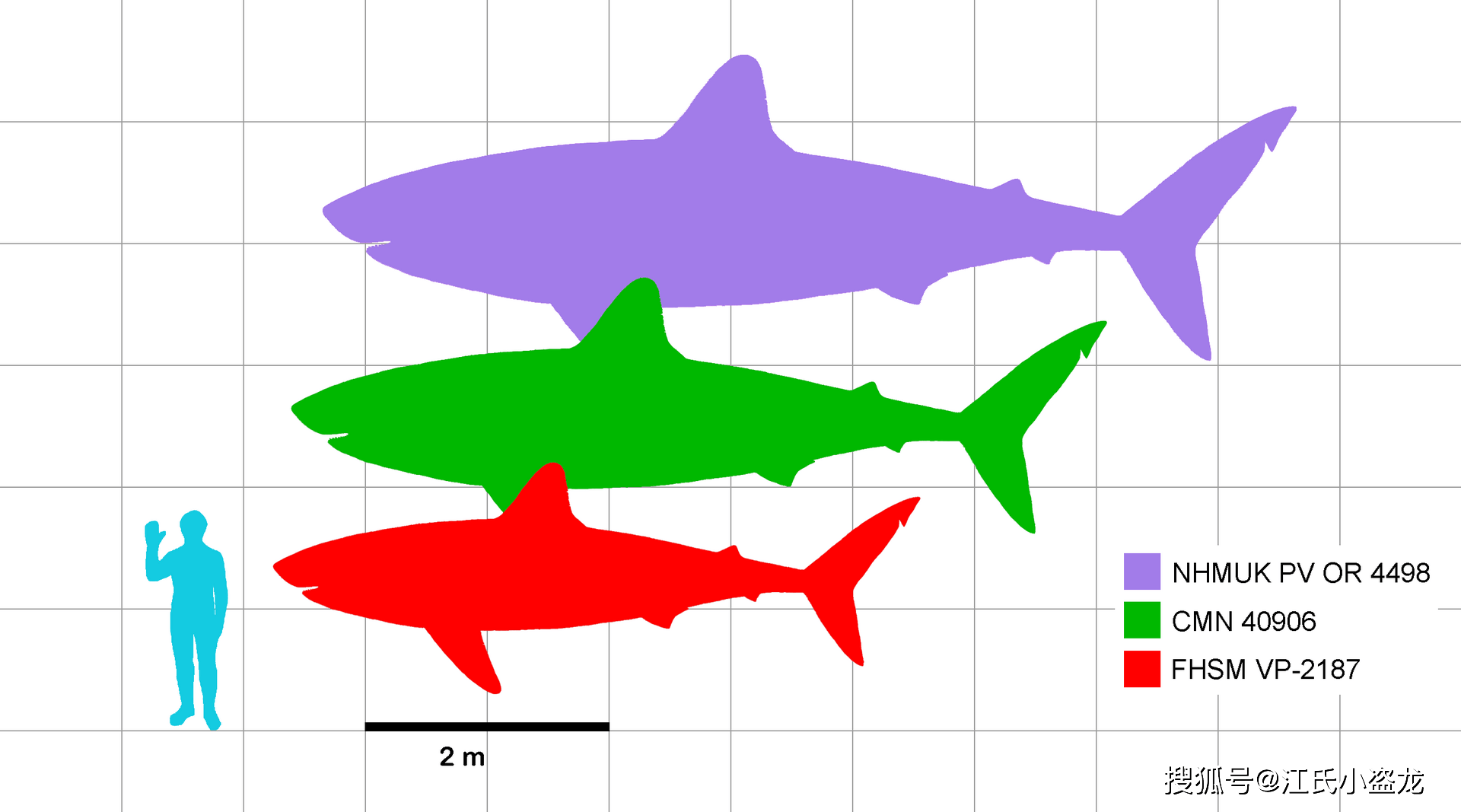 不同个体的白垩刺甲鲨对比