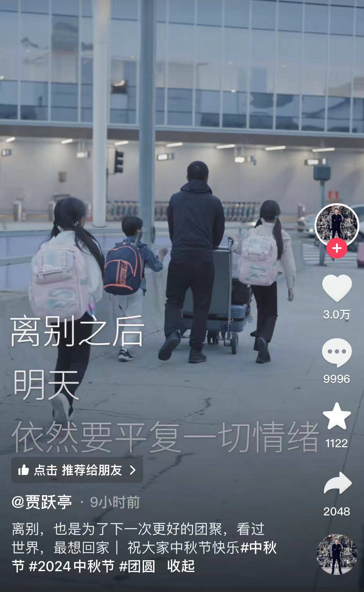 9月17日消息,贾跃亭今日发布了一条视频,内容为他与三个孩子短暂相聚后,又送孩子们去机场。视频文案为:“离别,也是为了下一次更好的团聚,看过世界,最想回家。”