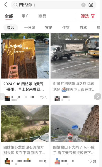 多位网友发帖称,去四姑娘山的道路因泥石流封闭不得不返程。网络图
