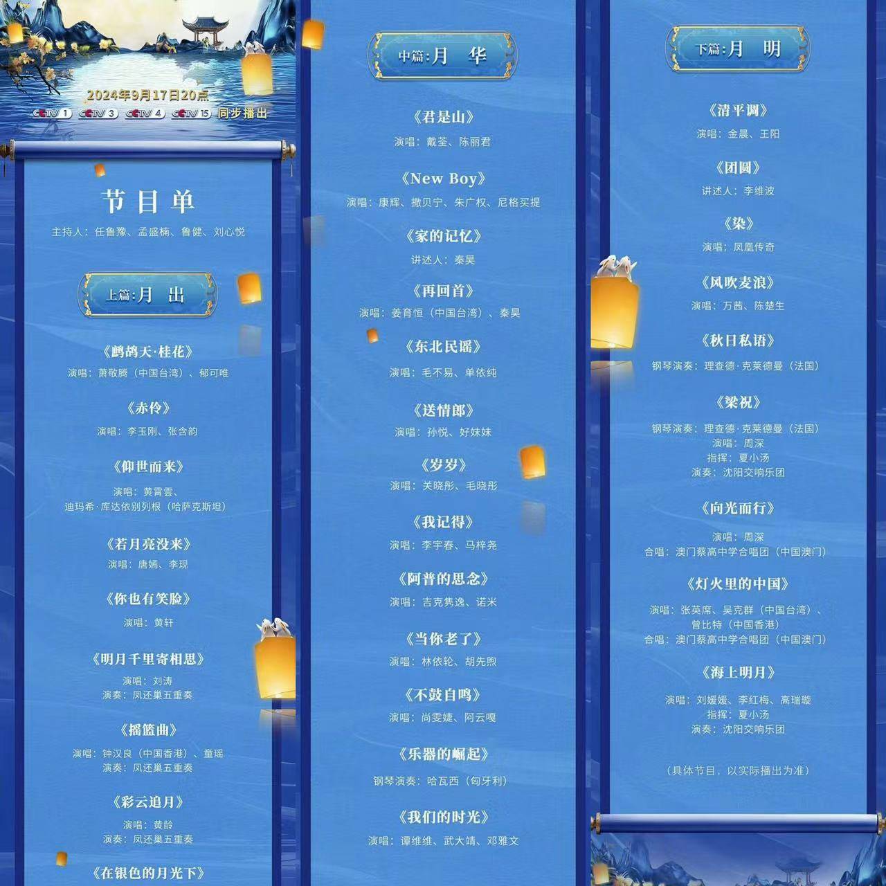 17日晚上央视将举行中秋晚会,目前节目单已经曝光。