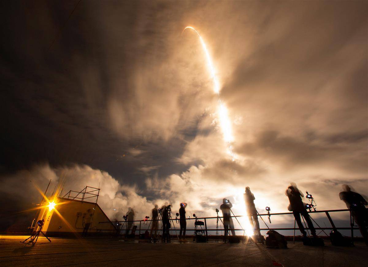 搭载“龙”飞船的“猎鹰9”火箭发射升空(图源:新华社)