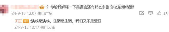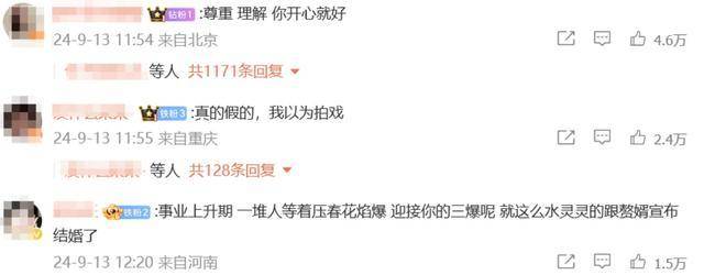 公布婚讯后,吴谨言的热评区被铁粉占领,多位铁粉留言表示无法理解。