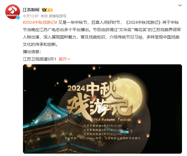 最后,是央视总台的,9月17日,晚间8点,正式开始,《中央广播电视总台2024年中秋晚会》
