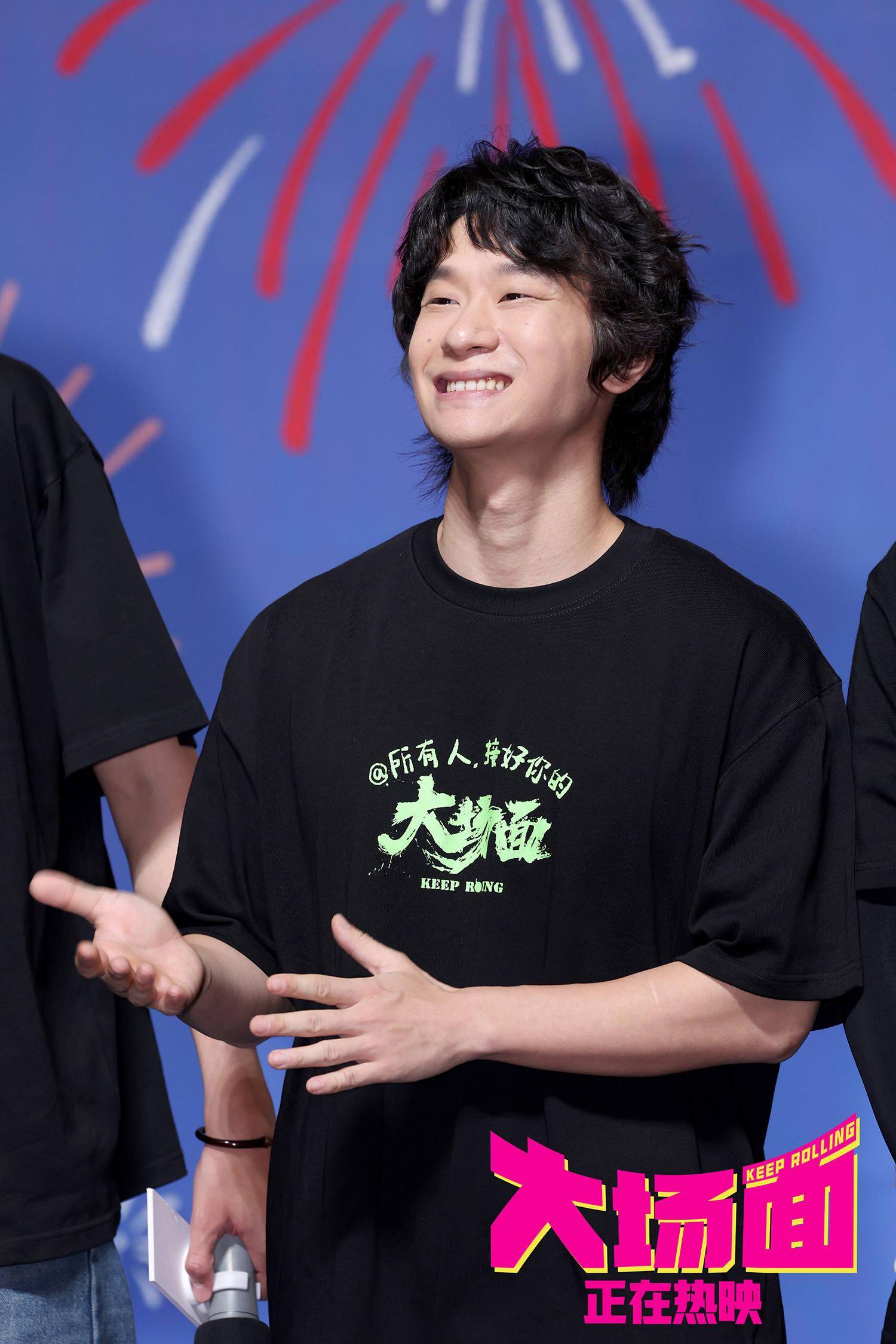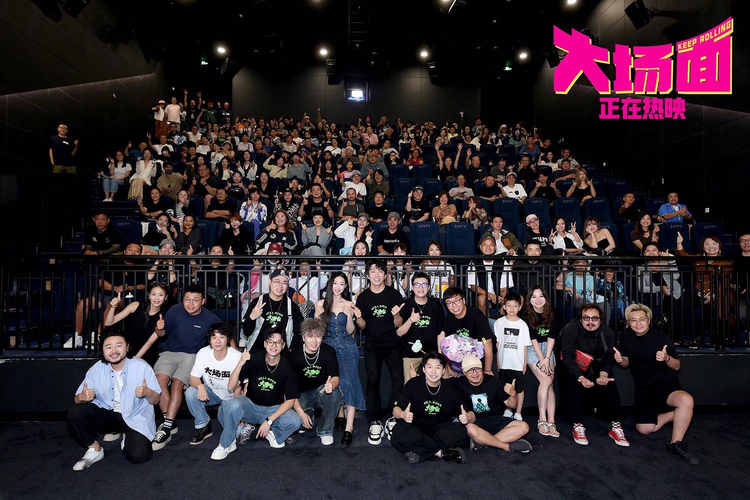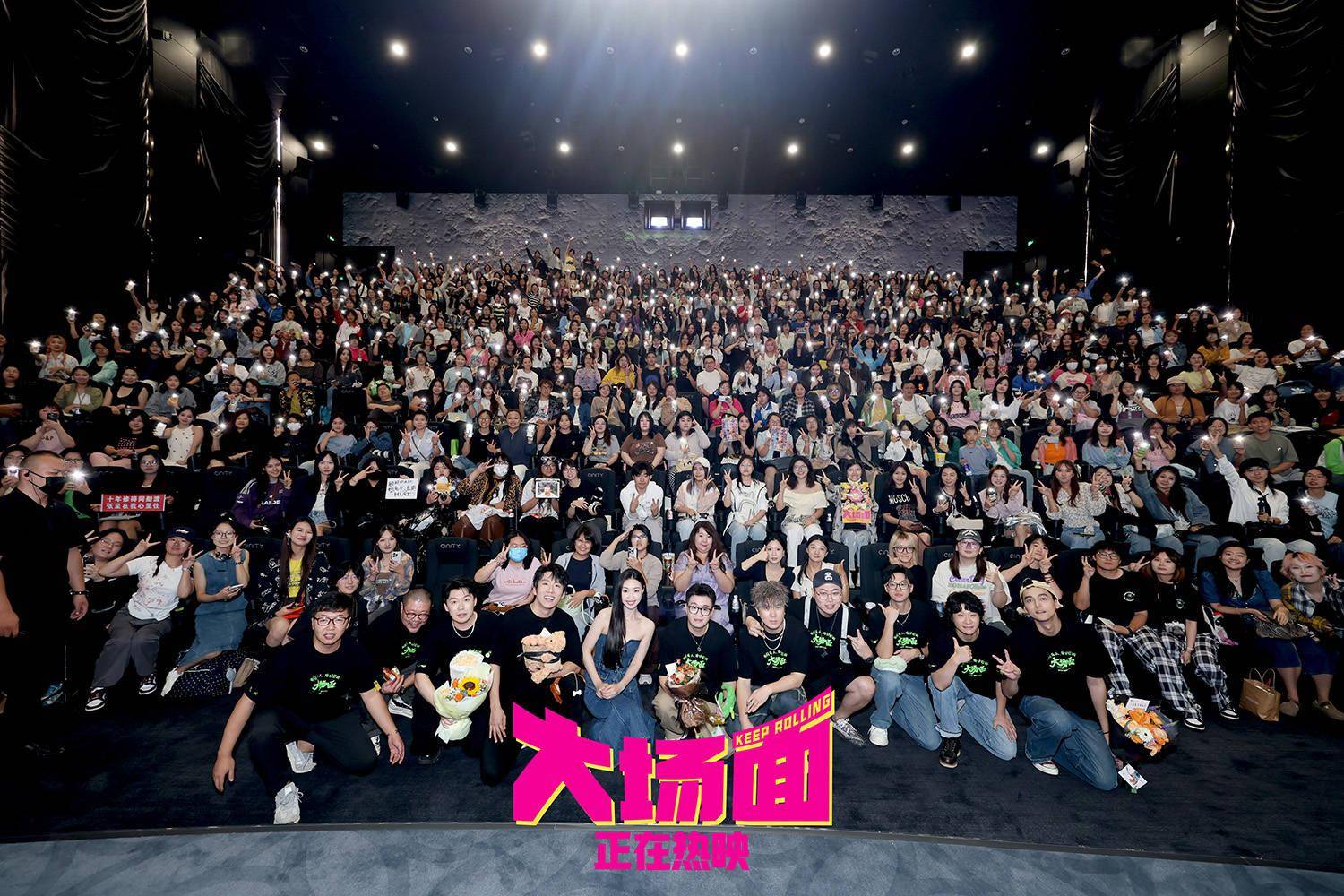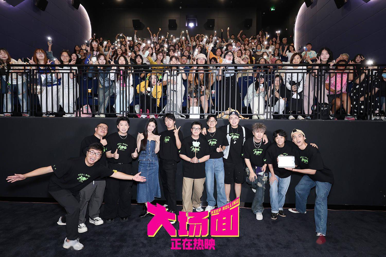 《大场面》是一部关于草台班子喜提大场面的灾难喜剧,也是一出小演员演绎小人物拥有大场面的人生喜剧。“就像强子哪怕身处绝境,身边也有一根从未熄灭的灯棒一样,《大场面》希望做生活里的微弱光源,用我们的全力给大家带来一点快乐。”人生无小事,皆是大事件,踩地雷,接地气儿,只要认真生活,每个无名的人都值得拥有自己的署名,都值得一个大场面!主演王天放真诚说道,“之前总是参加别人的首映,今天在我们自己的首映上,我们也想前辈们看到台上的兄弟姐妹们。”酷酷的滕表示,“每一代喜剧人都在前进,终将拥有属于自己的大场面。”每个人都能在电影中看到自己、找到同伴。@所有人,为我们自己用力鼓掌,我们都是人生大场面的共创人。