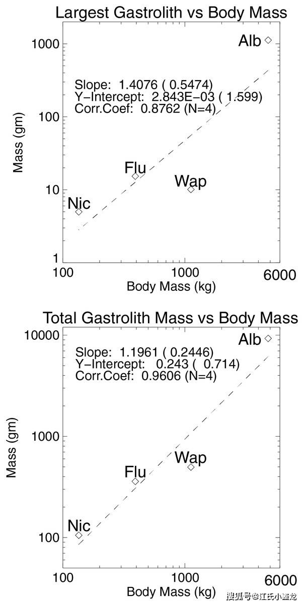 图注:关于胃石重量的分析,图片来自论文