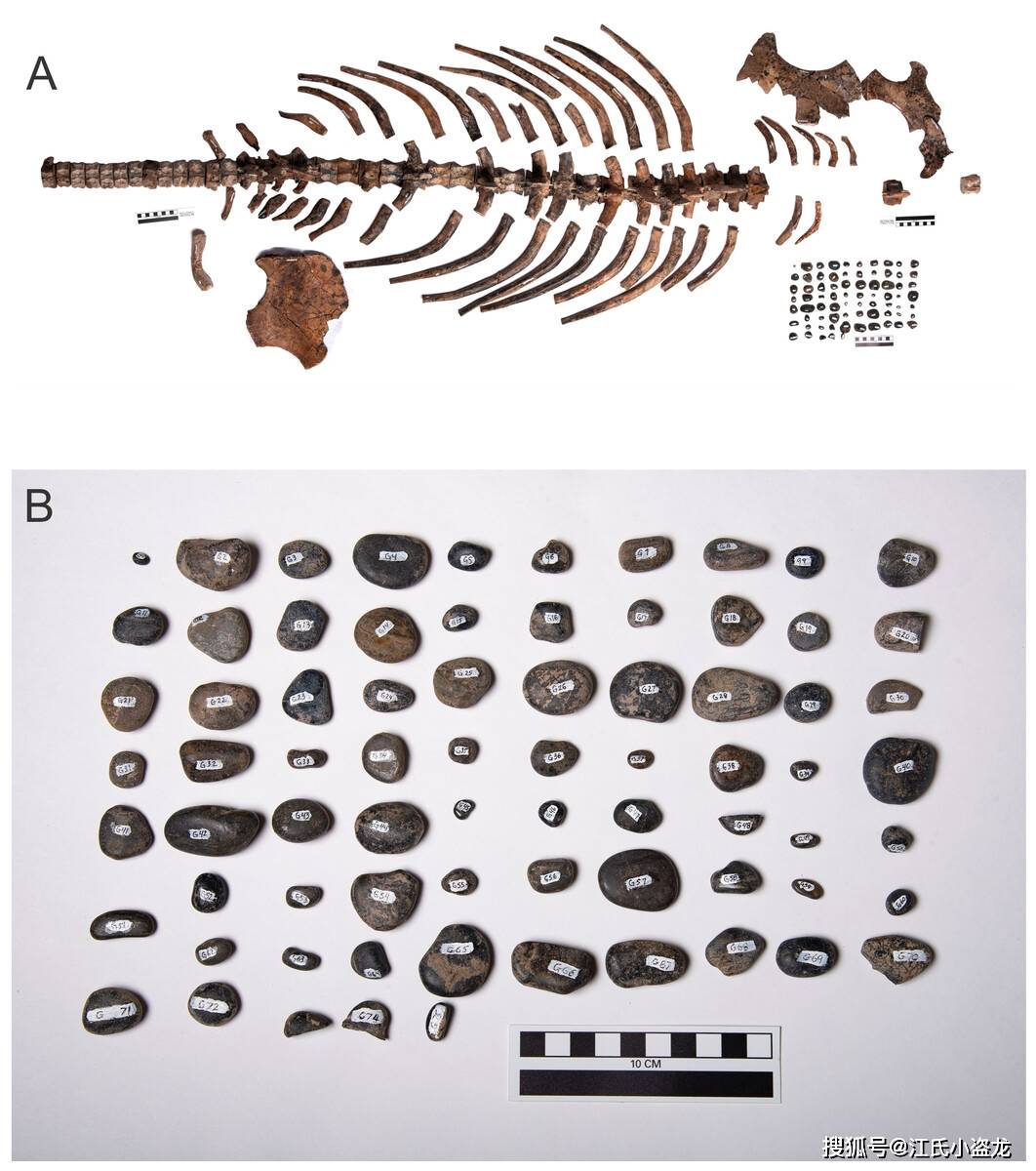 蛇颈龙类是中生代的三大海生爬行动物家族,它们拥有许多独特的生活习性,其中就包括吞石头(当然还有其他动物也有之中习性)。我们称这些被吞下的石头为胃石(Gastroliths),在解释胃石作用的时候,通常被解释为磨碎食物以加速消化和作为“压舱石”方便潜水。