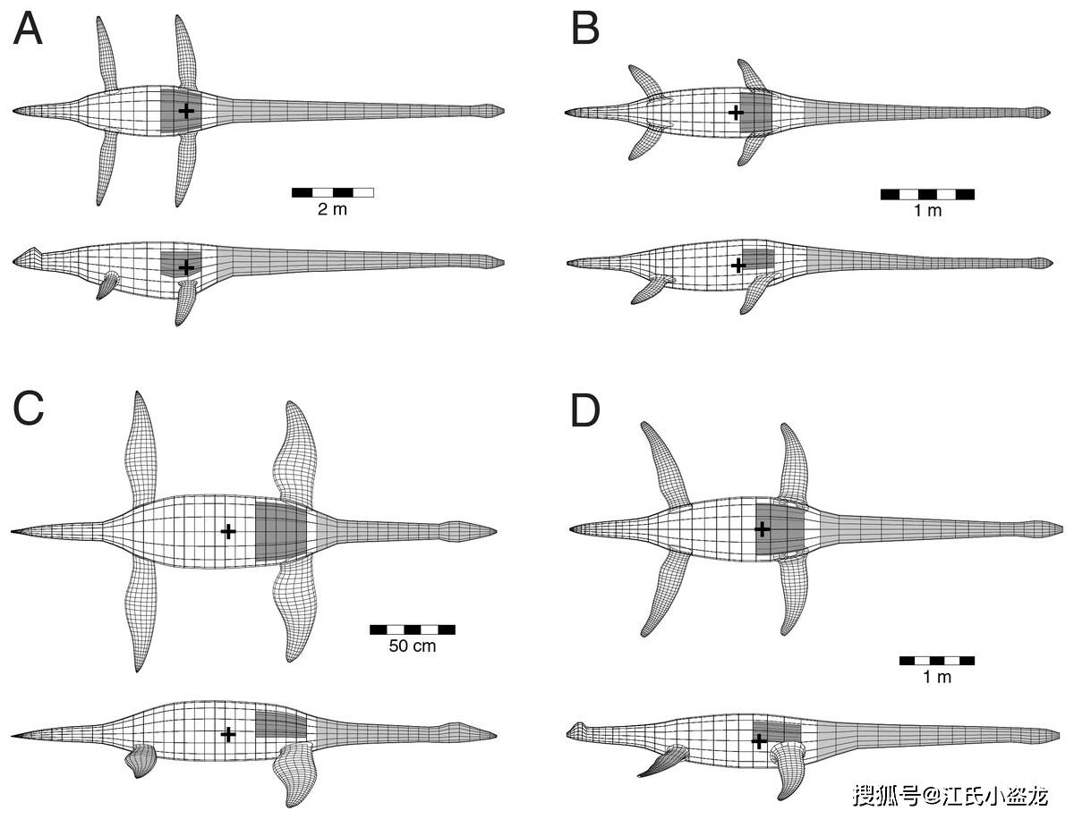 图注:四种蛇颈龙类胃石在体内的位置,图片来自论文