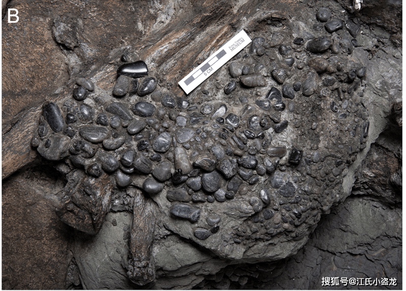 图注:雪浪泳龙的正模标本中的胃石,图片来自网络