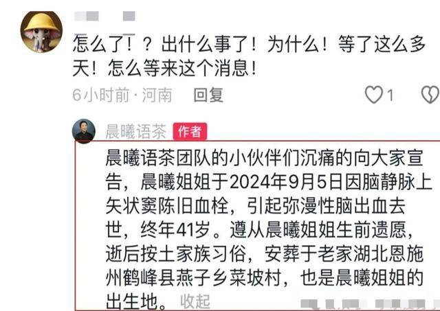 账号“晨曦语茶”最后一条视频
