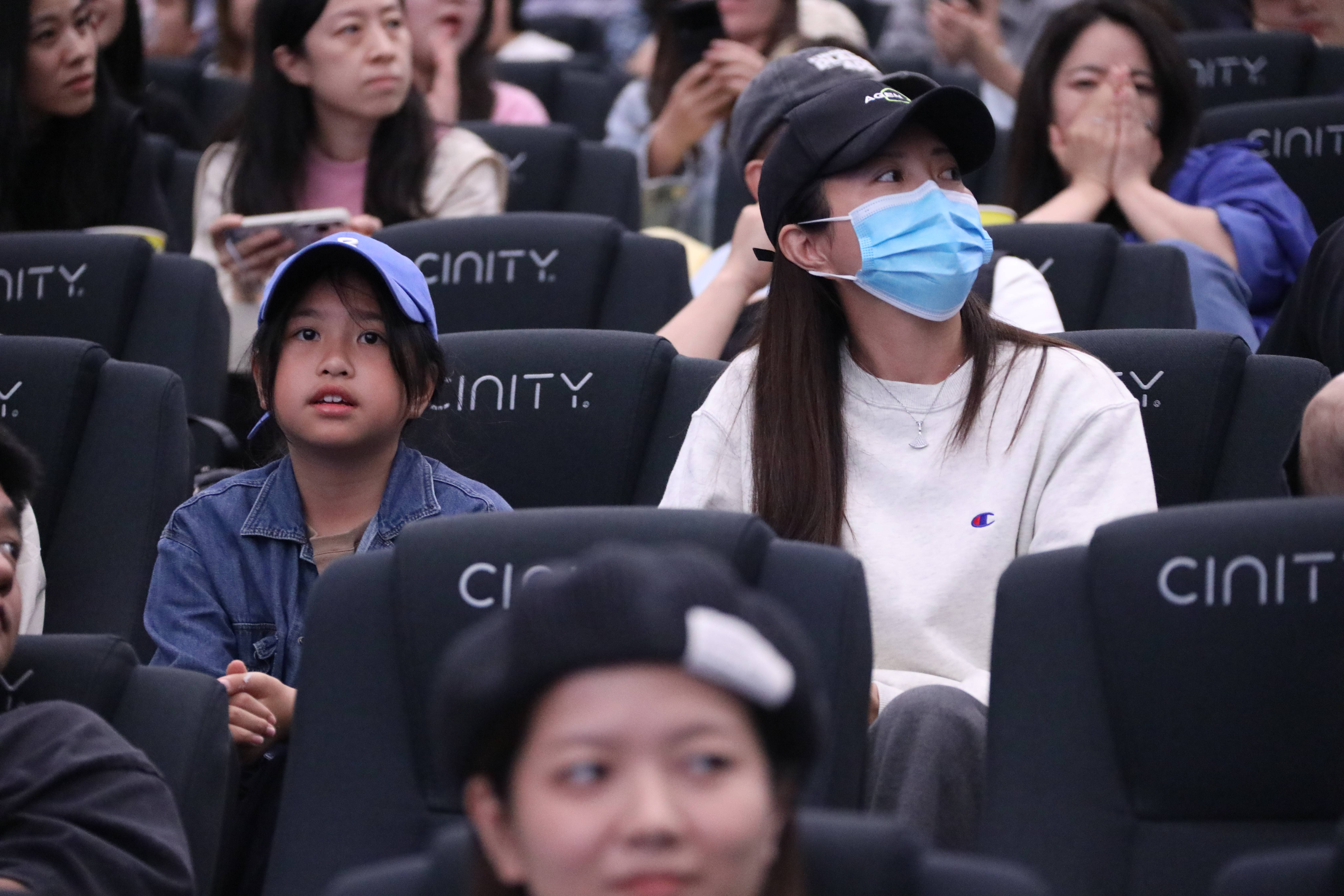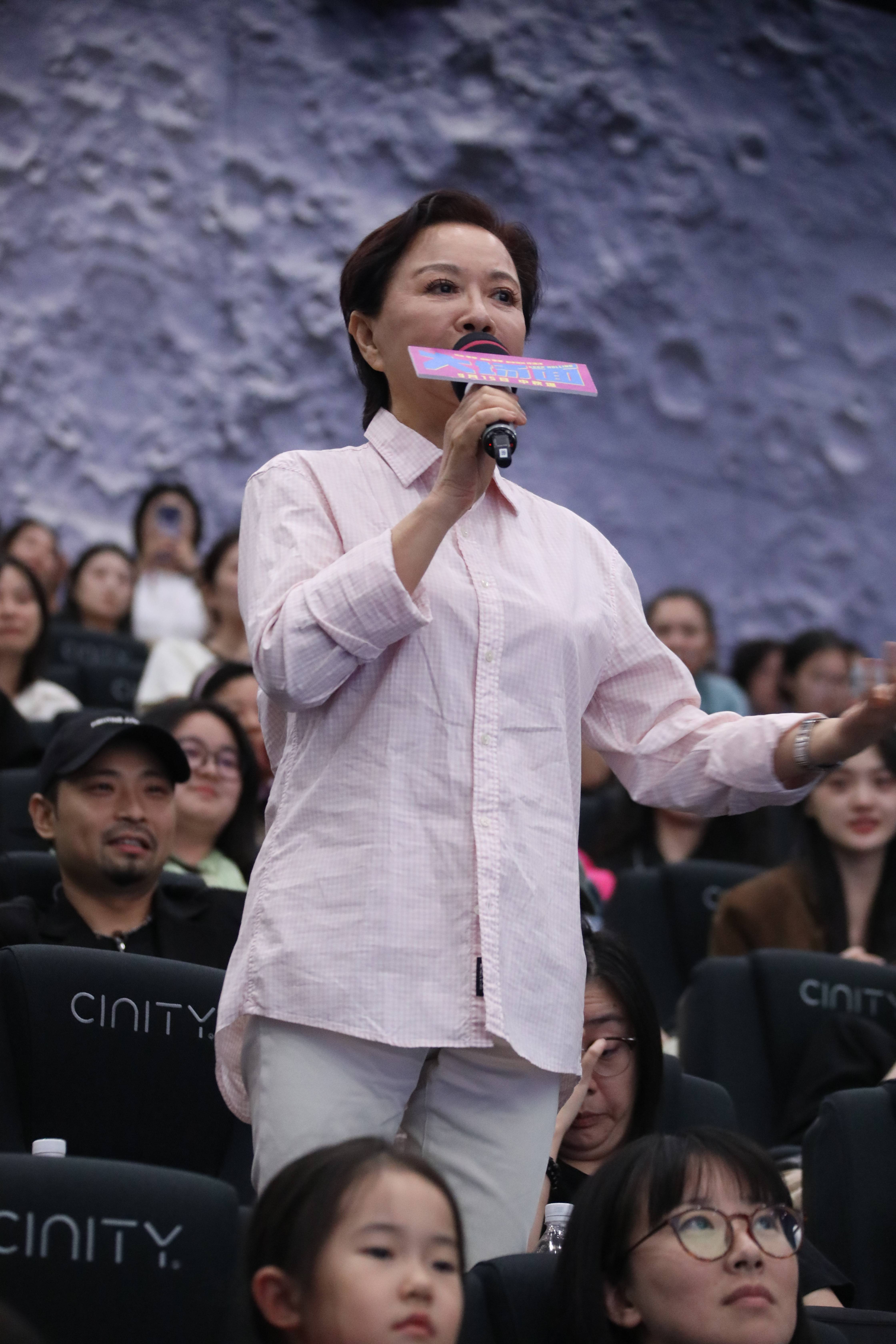 包文婧带着孩子饺子来到了现场,她表示包贝尔因为正在路演没有来到现场,但电影很好看,她之后会带着包贝尔再去看一遍。