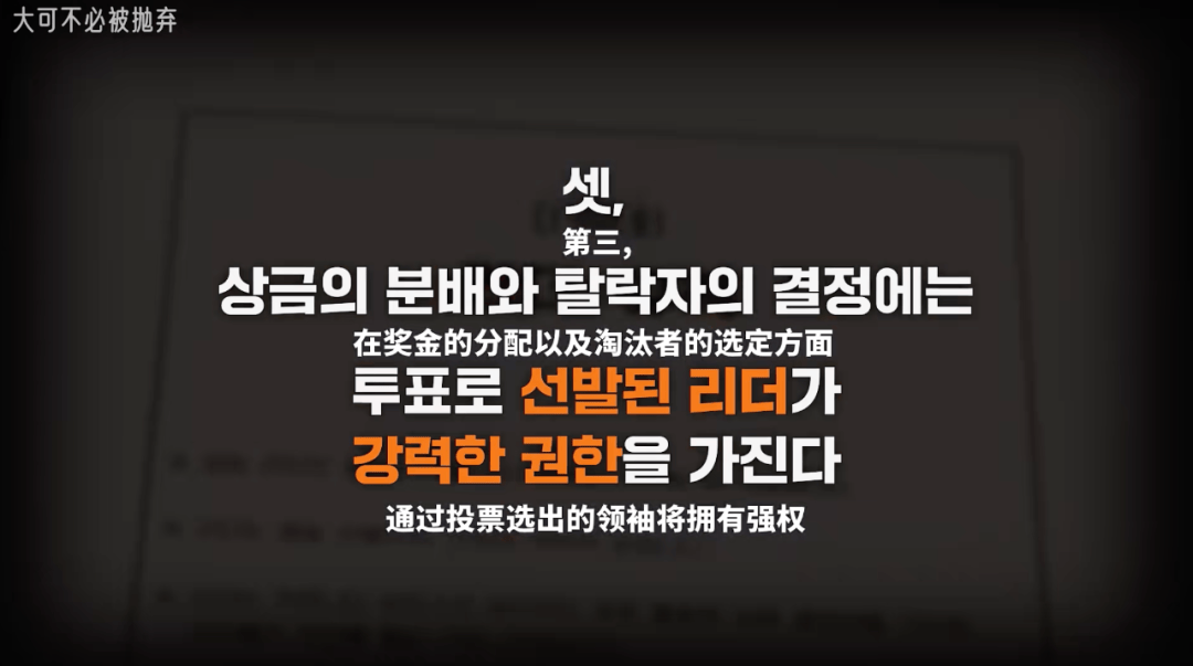 也就是说,如果想要生存到最后,获得更多的奖金,就需要形成自己的势力并成为领袖,亦或者是将同阵营的伙伴推选为领袖。