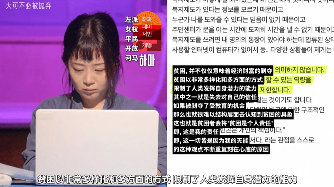 切身感受贫困问题, 并在阶级冲突中获得真实感受的河马在观察他人讨论的过程里,发出了以上的思考与反问。