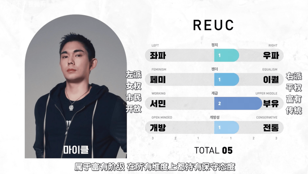 以此将所有参赛者们分别从政治、社会性别、阶级、开放性四个不同方向进行评分与分类。
