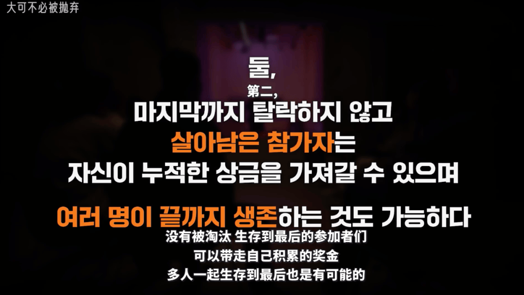 没有被淘汰,生存到最后的选手可以带走自己积累的奖金,而被淘汰选手的奖金则不会归属任何一方。
