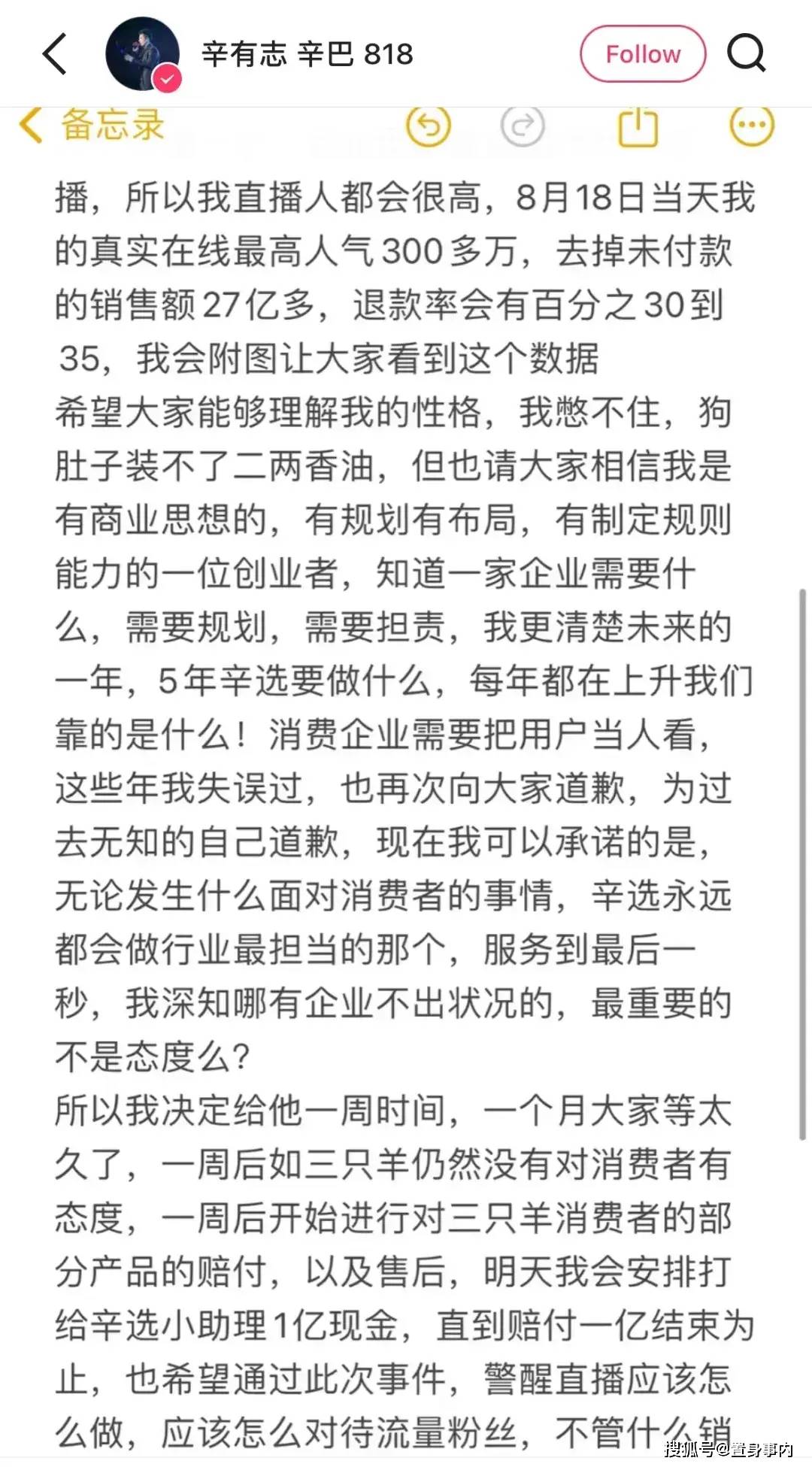 这点网友说得还挺对的。当年辛巴也卖过有问题的燕窝,但辛巴是真的买一赔三了,此后的选品也很少出现质量问题。