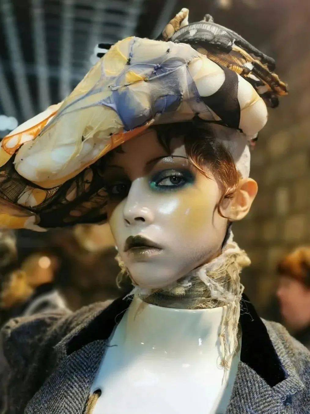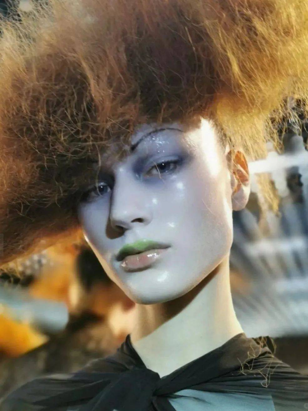 时间来到当下,在MAISON MARGIELA 2024春季高级定制系列的秀场上,前卫大胆的妆容风格,为观众打造了一场视觉盛宴。模特们浓郁深邃的烟熏妆,展现别样的色彩故事,搭配金色闪粉,为眼部妆容增添光泽感,与未来风格主义的瓷娃娃底妆形成强烈对比,带来了巨大的视觉冲击力。