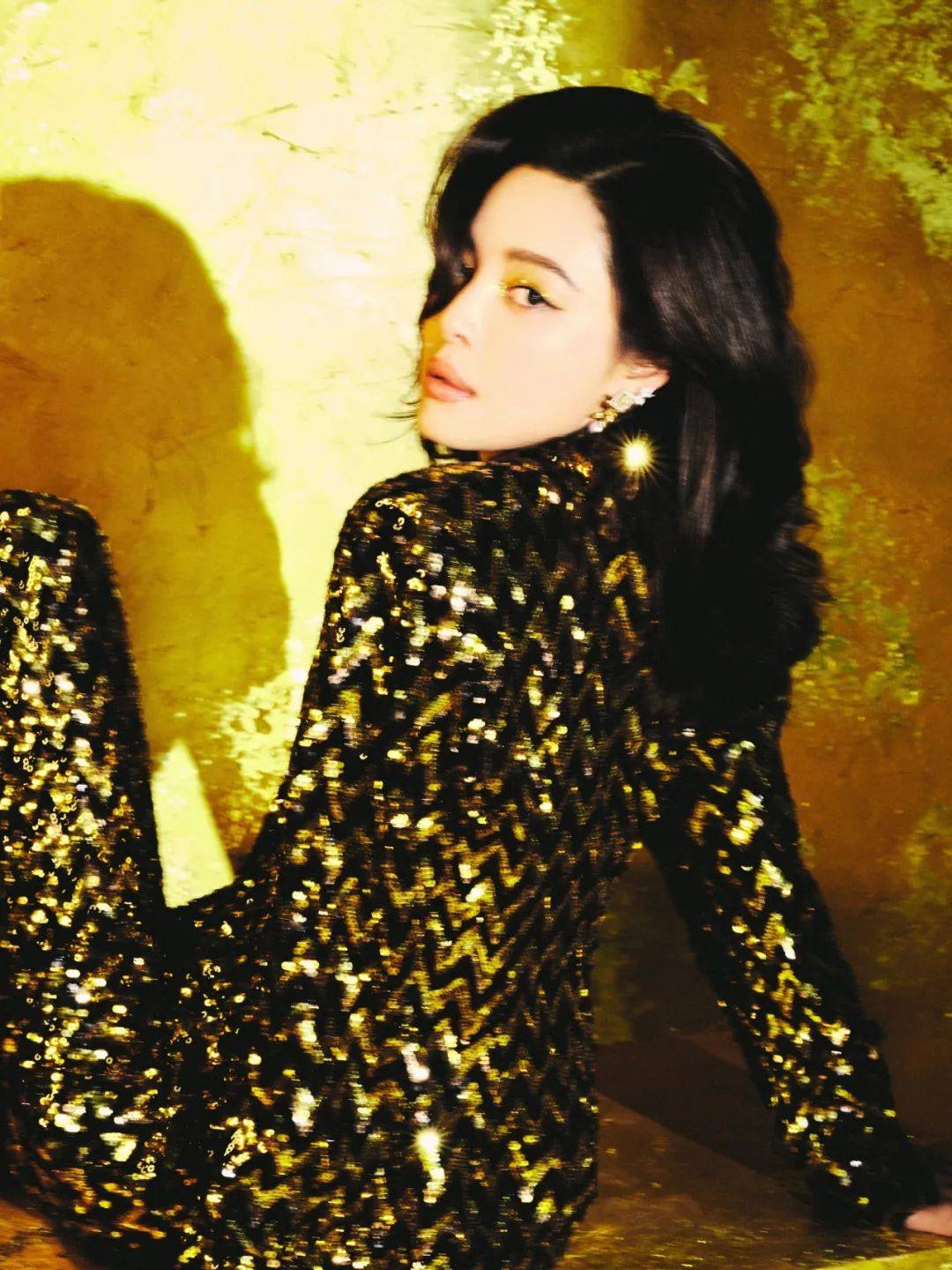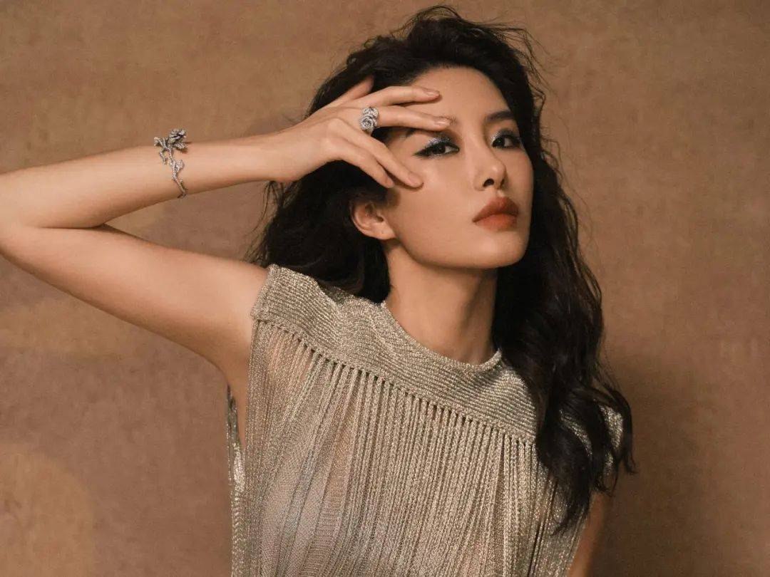 孟佳的黑金烟熏眼妆展现出了强烈的个人风格,眼尾处加强晕染眼影不仅能够加深眼部轮廓,还能放大五官的英气特质。金属元素的加入中和了烟熏妆原本的丧感,实现提亮和加深立体感的双重效果。