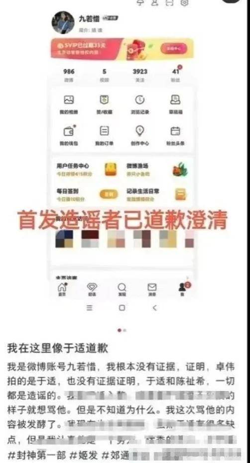 没过多久,最先开始爆料的账号也删帖道歉了,表示自己此前所说的一切都是造谣,就是为了骂于适,他也不知道怎么回事,莫名其妙自己的帖子就爆了,随后于适的粉丝也在广场上澄清谣言。