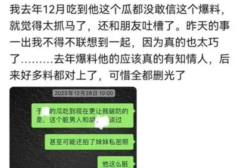 今年5月,网上曾流传疑似00后小花胡连馨的裸聊视频,而男主则被锁定在了于适身上。因为早在2023年,就有人站出来爆料说于适在和胡连馨在谈恋爱,可能还拍了女方的亲密照。