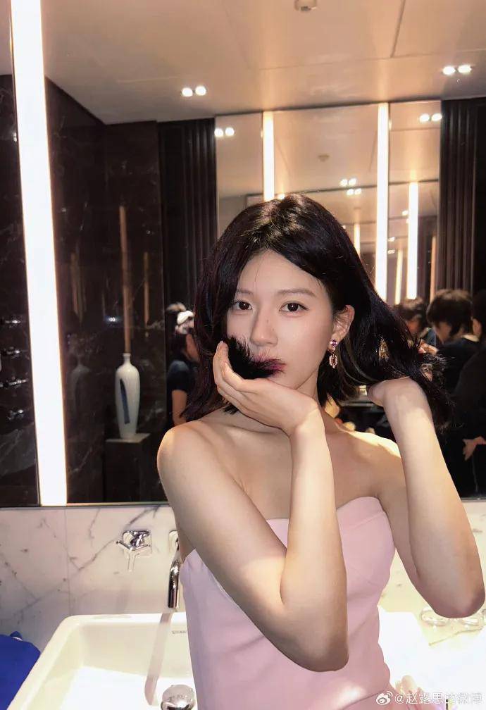 身穿粉色抹胸衣裙,赵露思双手托着自己的秀发,微微遮住俏脸,真是美爆了!