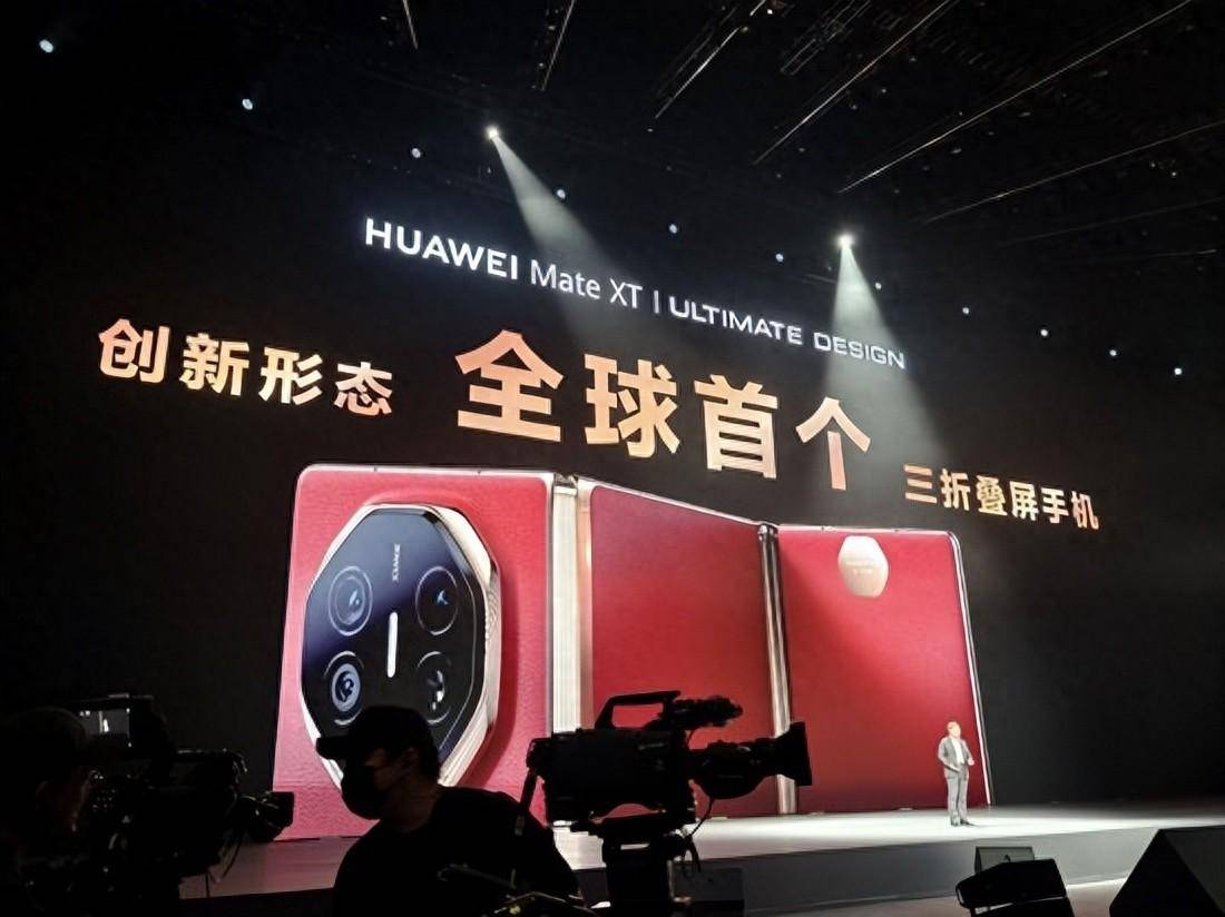 发布会上,华为Mate XT发布,余承东称是全球首款三折叠手机。他表示,华为团队奋斗五年,改写行业历史,将科幻变成现实。