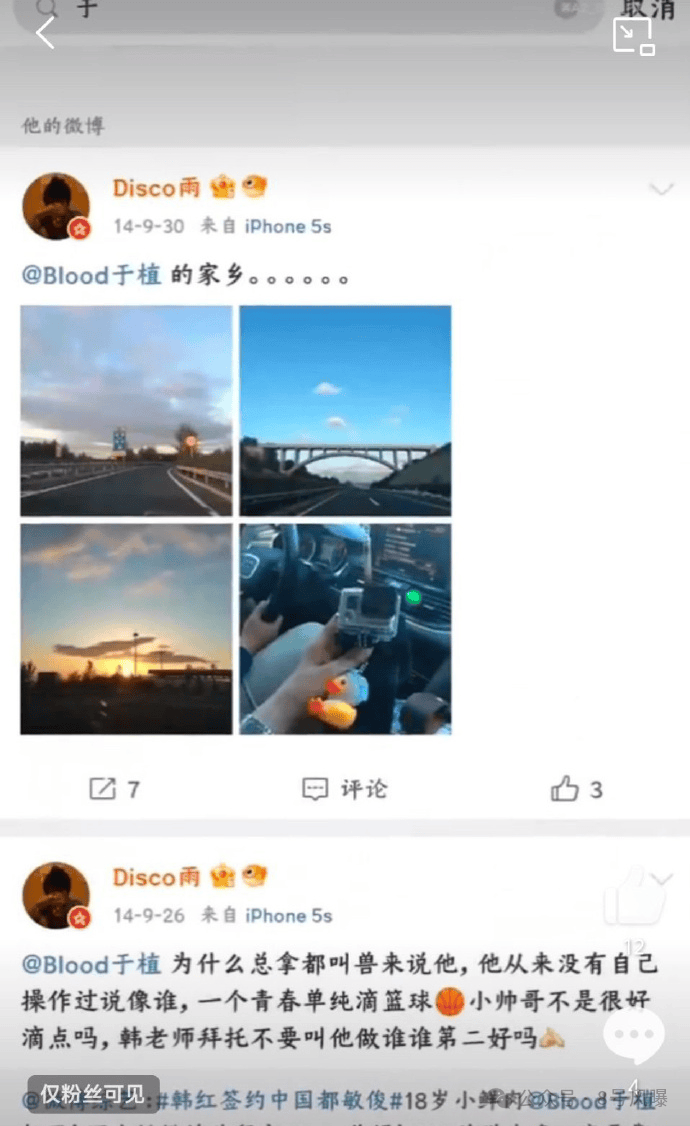 2014年9月,账号为“disco雨”的博主提到“于是”,那个时候他还叫于值,经此之后,“disco雨”贡献了许多关于“于是”的精彩图。