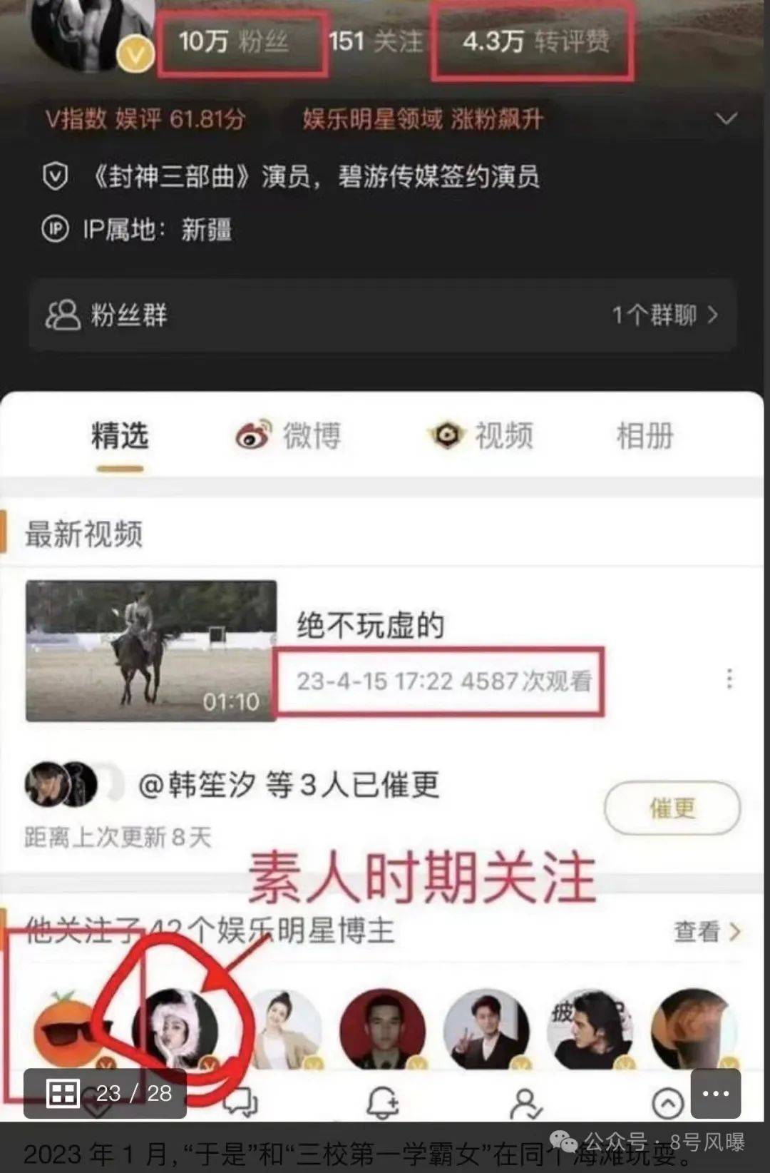 张雨绮用“马背上劈腿”来隐喻这件事,让人联想到因《封神》大火且马术技艺高超的男演员。