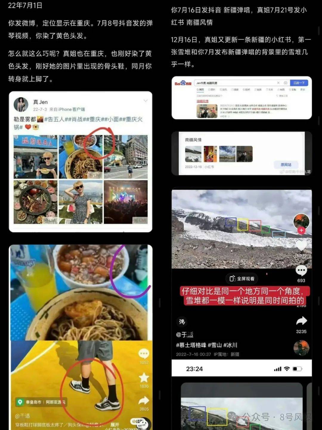 网友从一些细节中发现二人关系不一般,比如两人有同款衣服、配饰等,甚至发现“于是”拍摄的照片背景墙壁与“化妆师姐”的如出一辙,疑似两人曾同居。