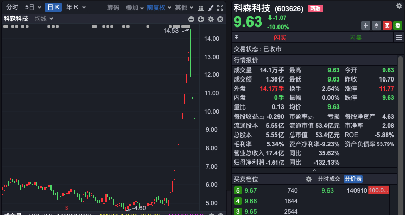 此外,前期热门股今日继续大幅下挫。曾连续10日涨停的科森科技一字跌停,连续第3日跌停,新亚制程、大众交通、上海九百、联创电子等10余只前期连续涨停的强势股今日均以跌停报收。