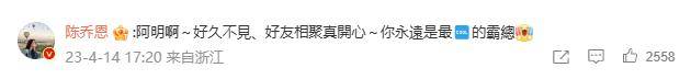 陈乔恩也在评论区留言:“阿明啊~好久不见、好友相聚真开心~你永远是最cool的霸总”。
