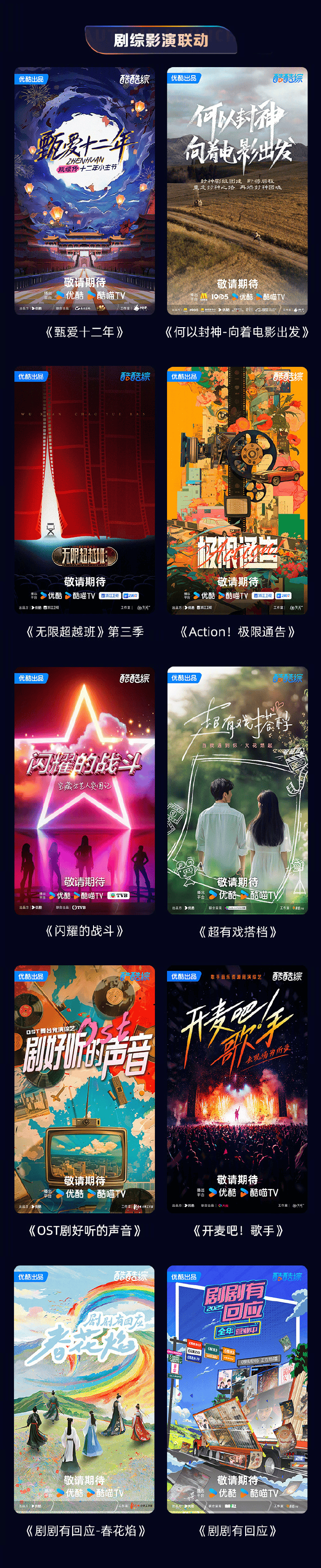 其实这方面一直是优酷的优势领域,毕竟背靠整个大文娱的内容生态,跨种类、跨品类的资源协同都不是问题。单这份片单里,就有剧综联动的《甄爱十二年》《剧剧有回应》和全新升级的《OST剧好听的声音》,以及与大麦合制的音综《开麦吧!歌手》等。