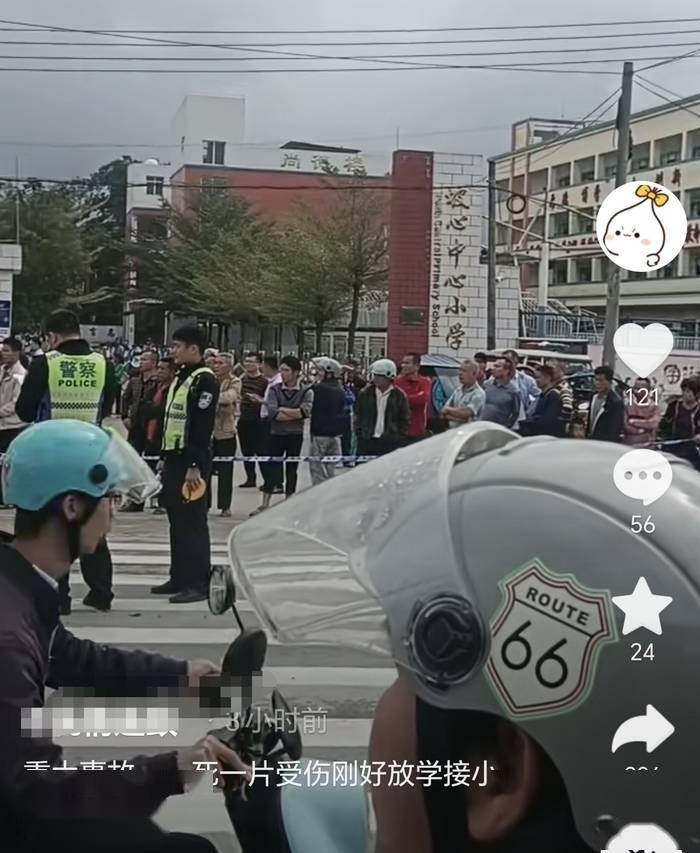 9日上午,有网友发视频称,海南省屯昌县某小学门口发生一起车祸,此事引发广泛关注。视频显示,这起事故现场出现了人员伤亡的情况。在事发现场,一辆大型卡车呈斜停姿态占据了道路中央,车尾处似乎有受伤的行人倒在地上。此外,不远处还有两辆摩托车翻倒在地。周围聚集了大量行人围观,还有多辆大卡车停在路的另一侧等待通过。警察和消防人员在现场进行处置工作,并维持现场的秩序。