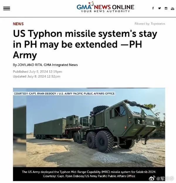 在2024年4月美菲演习中,美军在菲律宾北部的吕宋岛部署了新的中程导弹系统,演习后依然久久不撤。中国多次反对并谴责美国对菲律宾的这一军事部署,并称将破坏地区稳定。据路透社报道,匿名美国官员宣称,是否向菲律宾长期部署导弹,将部分取决于中国的行动。这肯定是讹诈,但作用没有多大。