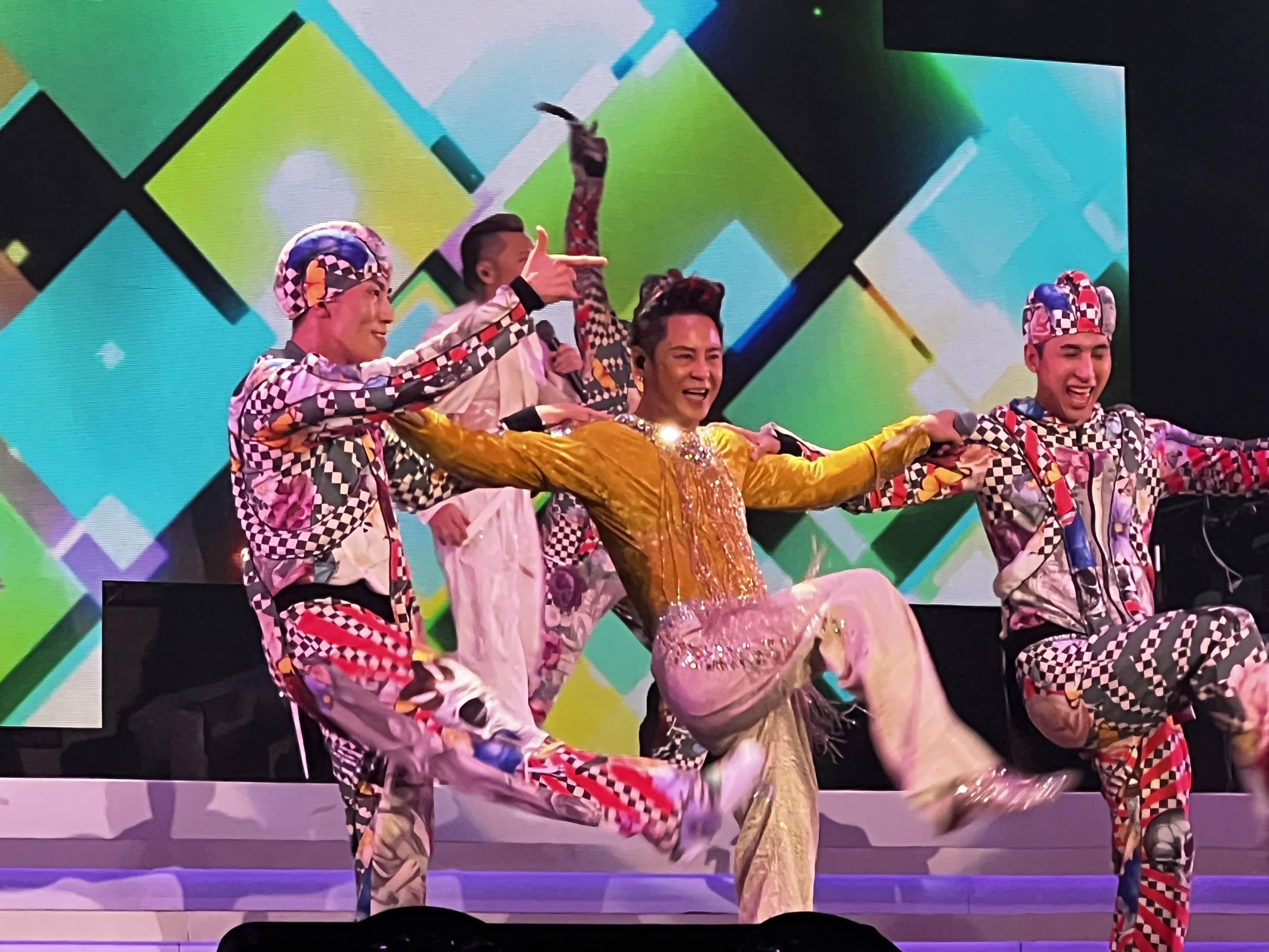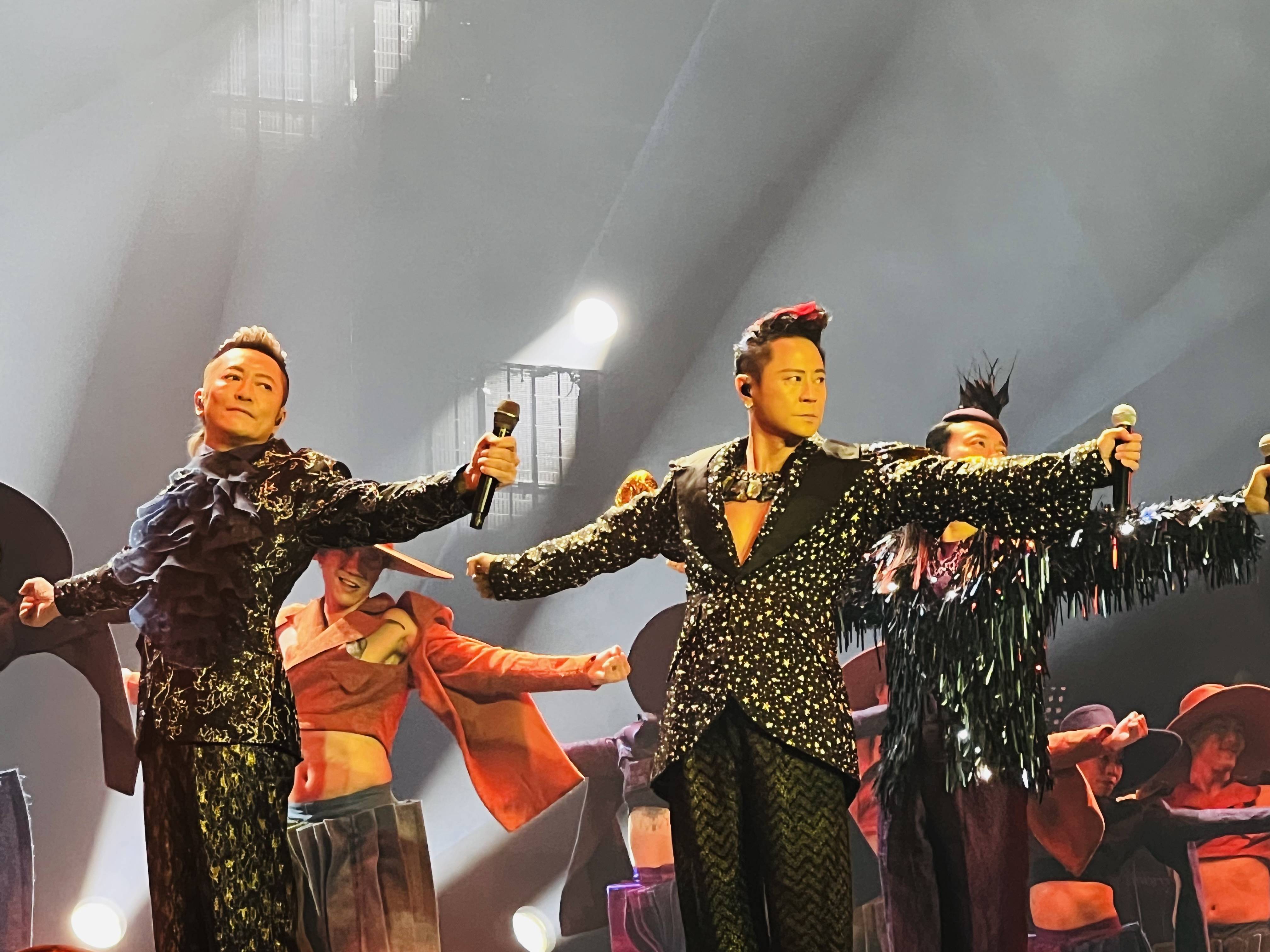 在上周末的澳门金光综艺馆,草蜢三子凝聚出道38年的力量,以超凡的舞台经验施展浑身解数燃亮金光舞台,一把年纪的三子唱跳全场,为观众带来一场听觉与视觉双重享受的感官盛宴。近三个小时小时的演出中,三位平均年纪57岁的“老男孩”在自己的《RE: GRASSHOPPER CONCERT 草蜢演唱会2023》首秀中,将热情的成熟性感魅力演绎到淋漓尽致。