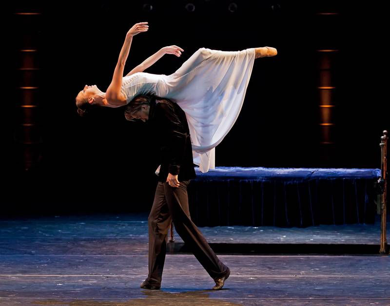本次再度回归的经典保留剧目之一《安娜·卡列尼娜》,剧中共选用17首柴可夫斯基的音乐选段为背景使这部舞剧成为一部融合了名著、名曲和名编的集大成之作,使舞作更加绽放人性的光芒。整部舞剧正是以人物心理的细致变化而展开,有意弱化情节,着重刻画人物心理变化,让躁动而抽象的精神世界生动又具象的呈现在舞台之上。艾夫曼的《安娜·卡列尼娜》抛开托尔斯泰小说原著中故事的分支戏剧线,将重点聚焦于安娜、卡列宁、沃伦斯基三个人的感情纠葛上。除去繁复的舞台布景和华美的服饰,单纯地用舞蹈的语言来叙述一个女人飞蛾扑火般的爱情故事。艾夫曼的安娜为爱而生,为情欲本能而飞蛾扑火,她的身上有着现代女性独立敢爱的个性却又受到时代思想的桎梏。