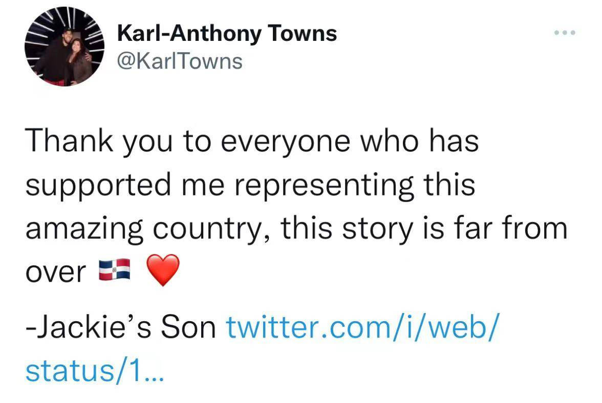 多米尼加球员唐斯在社媒上写道:“感谢每一位支持我代表这个神奇的国家的人,故事还远未结束。”
